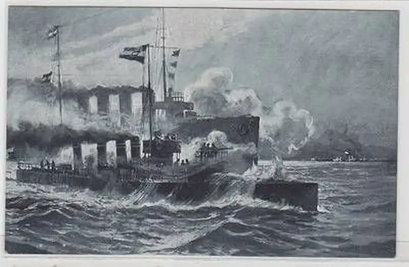 Österreichisch Ungarischer Flottenangriff auf San Giovann di Medua und Vernichtung von 16 italienischen Proviant- und Munitionsschiffen, ungelaufen, gute Erhaltung siehe Bild,