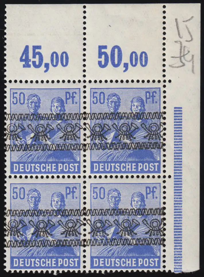 Viererblock Plattendruck mit durchgezähntem Oberrand, ungefaltet und nicht angetrennt, postfrische Erhaltung. Im MICHEL 2024 mit 320,- Euro ++ bewertet.