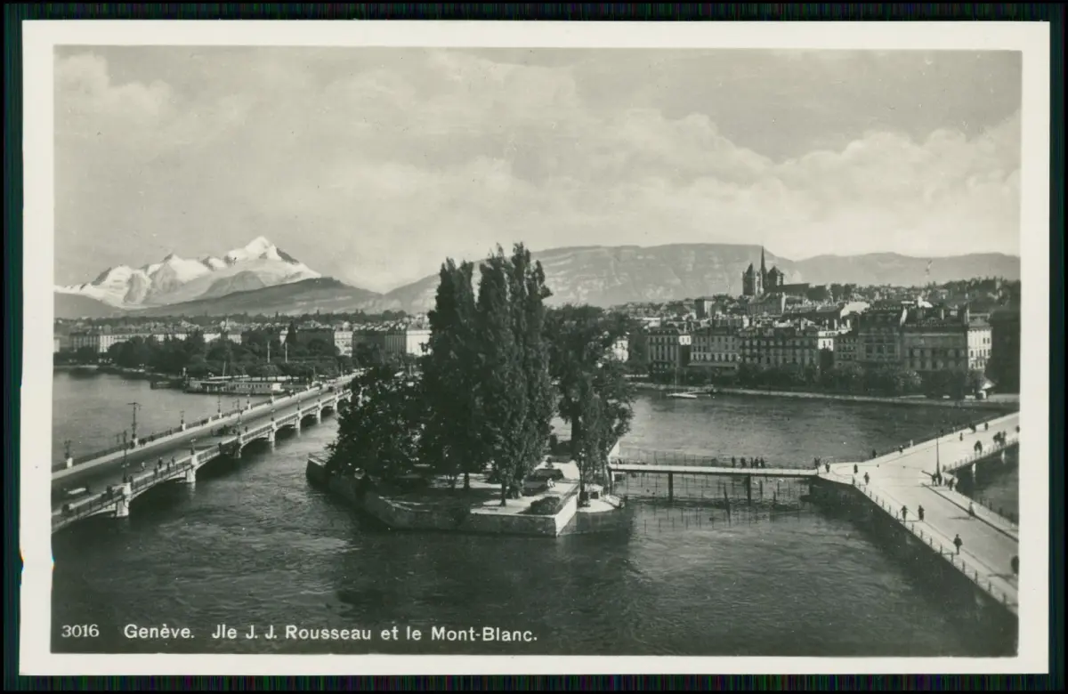4x Foto AK - Genf J.J. Rousseau Insel Mont Blanc Brücke Altstadt und andere 1928