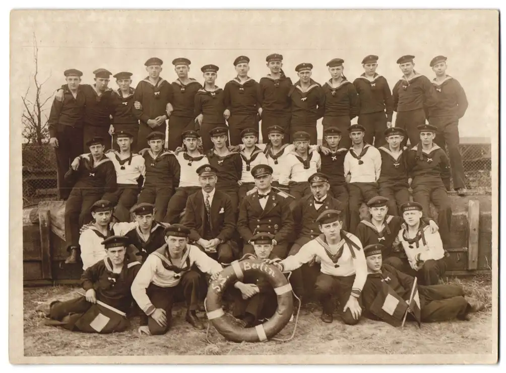 5 Fotografien 1.WK, Wolter, Berlin, Ansicht Berlin, Kadettenanstalt Lichterfelde, Ausbilder & Marine-Kadetten in Uniform