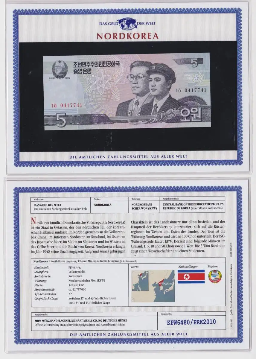 5 Won Banknote Nordkorea 2002 bankfrisch UNC (170010)
