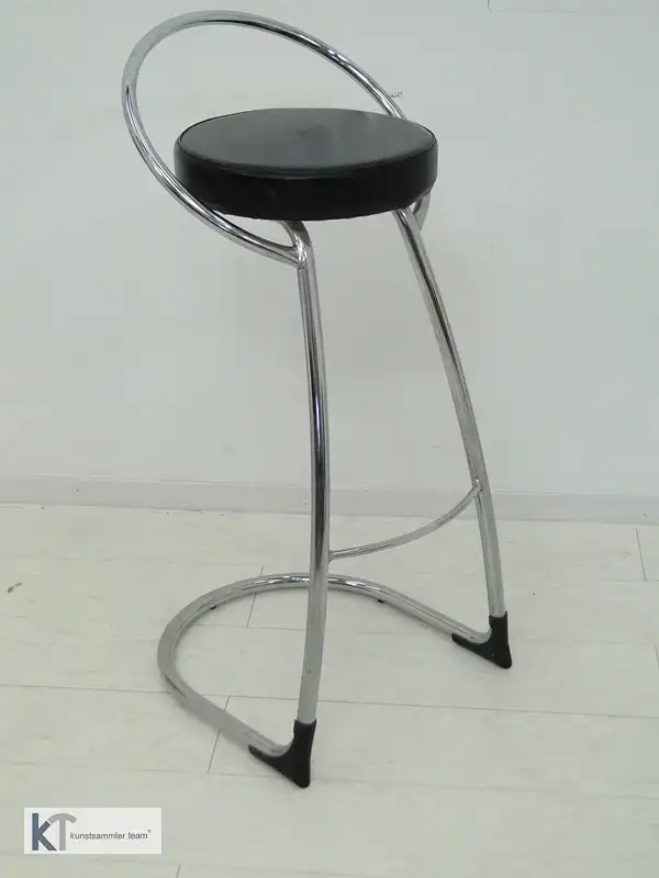 Ein herrlicher Barhocker die Sitzfläche ist mit schwarzen Kunstleder bespannt, die Bilder sind Teil der Beschreibung, schöner Zustand. \n\nMaße: ca. 45,5 cm breit ca. 97 cm hoch ca. 50 cm tief Sitzhöhe: ca. 83 cm hoch \n\nArtikelnummer: 5080D