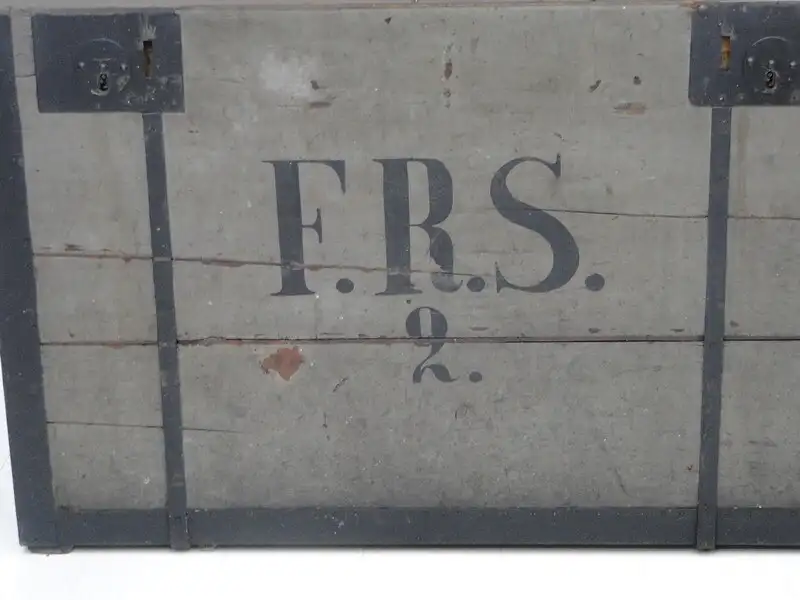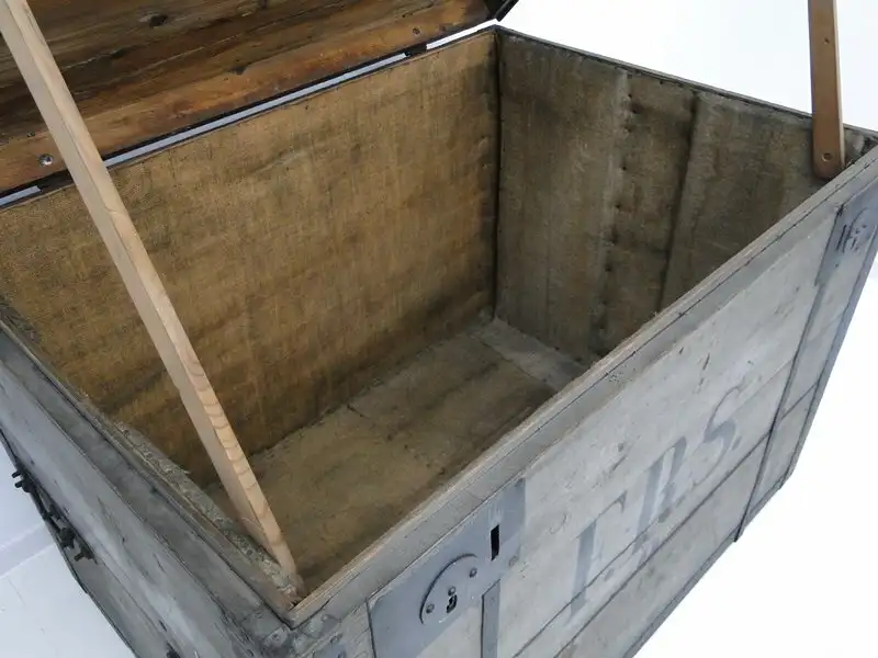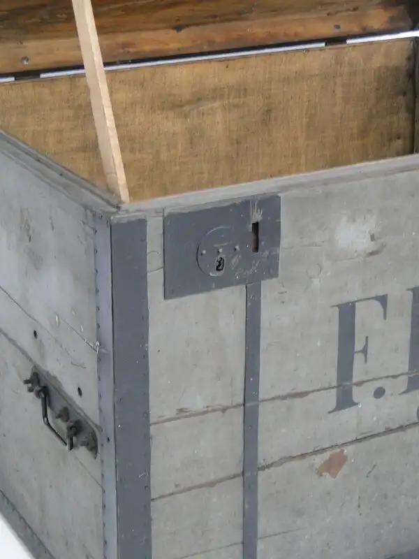 Eine mächtige Truhe um 1900,mit Original Schloss - leider kein Schlüssel,mit Tragegriffen, die Bilder sind Teil der Beschreibung, sehr guter Erhaltungszustand. \n\nMaße: ca. 118 cm breit ca. 85 cm hoch ca. 85 cm tief \n\nArtikelnummer: 5111D H