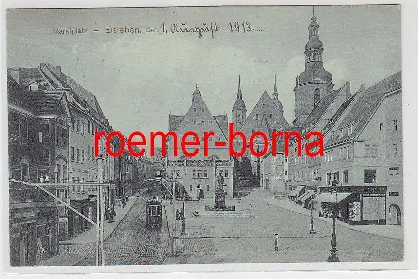 51902 Ak Eisleben Marktplatz mit Strassenbahn 1913