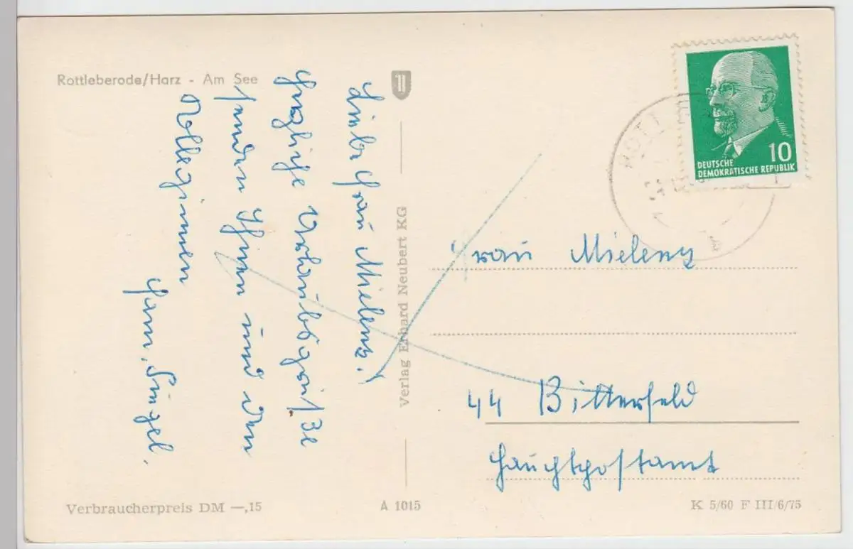 (52840) Foto AK Rottleberode, Südharz, See, Ruderboot 1960er