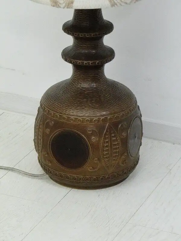 Eine wunderschöne 60er Jahre Stehlampe herrliches Design, schöner, großer Lampenschirm, Verkabelung funktionstüchtig - jedoch keine Gewähr, da wir nicht sagen können, ob sie der geltenden NORM entspricht, exkl. Leuchtmittel. \n\nMaße: ca. 33 cm breit ca. 141 cm hoch \n\nArtikelnummer: 5368D