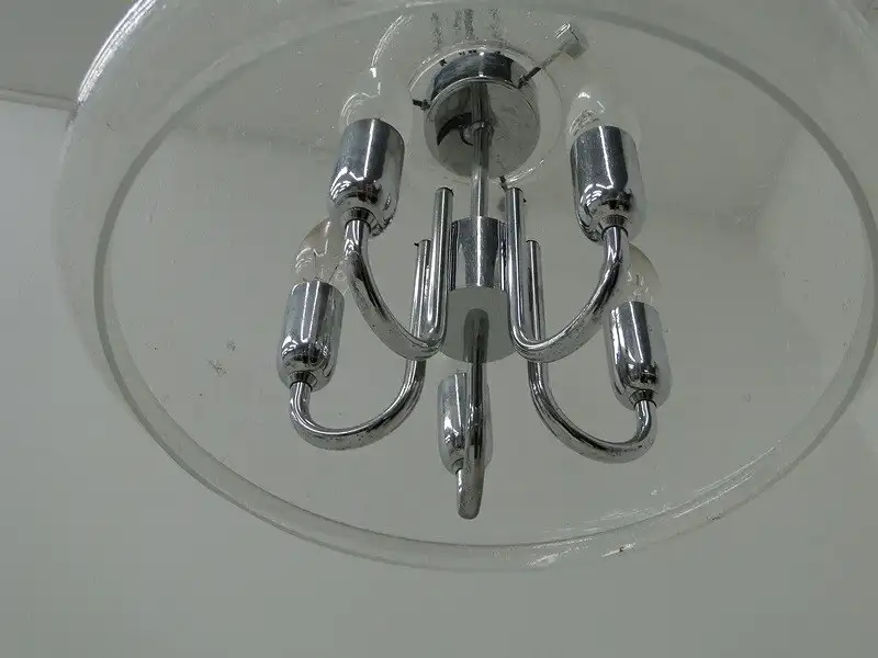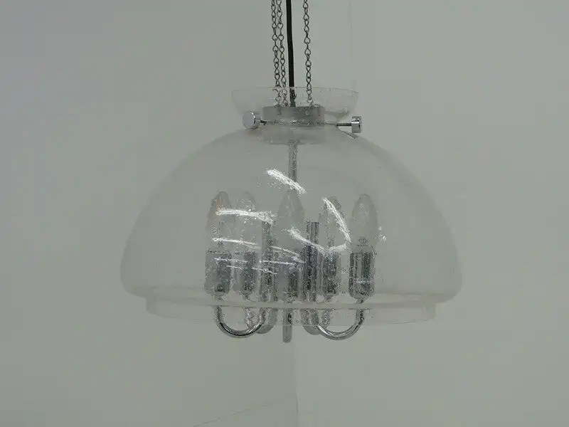 Ein herrlicher Luster, wunderschönes Design, 5 flammig, satinierter Glasschirm, exkl. Leuchtmittel, 2 Kartonversand. Die dazu passende Deckenlampe finden Sie in unseren laufenden Angeboten. \n\nMaße: ca. 40 cm breit ca. 130 cm hoch \n\nArtikelnummer: 5373D