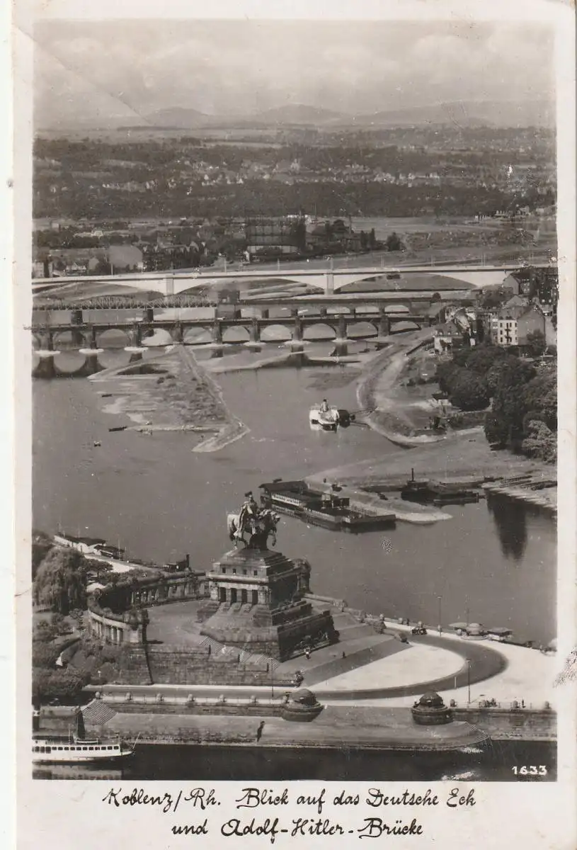 5400 KOBLENZ, Blick auf Deutsches Eck und Adolf - Hitler - Brücke, Moselschwimmbad, 1940