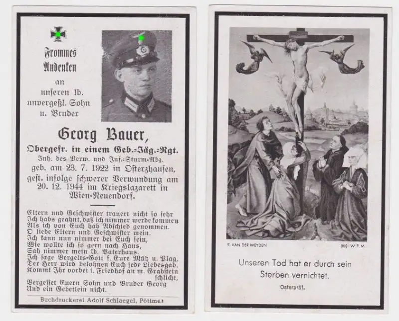 56158 Sterbebild WK2 Gebirgs-J?ger-Regiment Kriegslazarett Wien-Neuendorf 1944