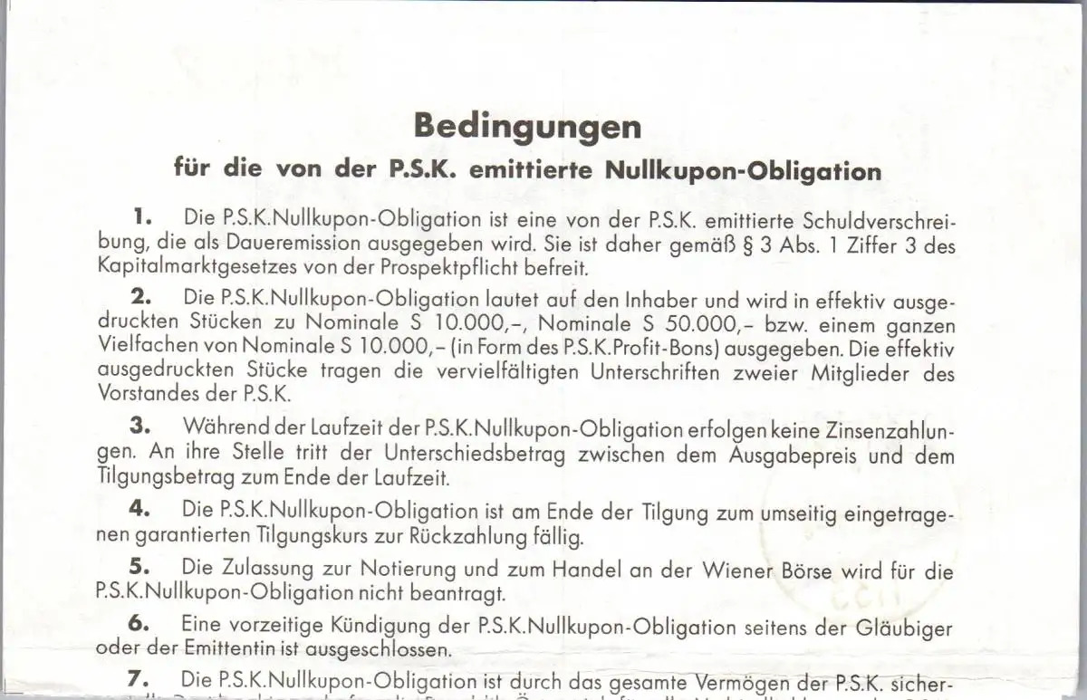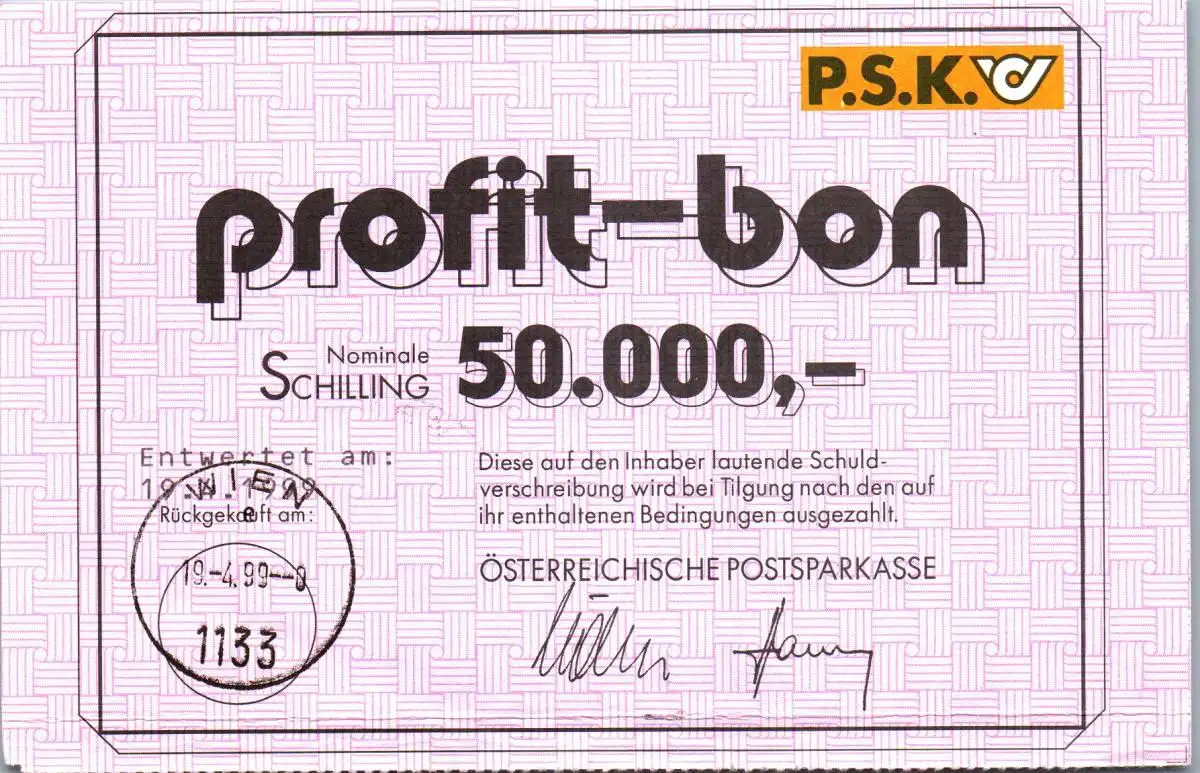 57574 - Österreich - PSK , P.S.K. , Postsparkasse , Schuldverschreibung , Profit Bon - 1999