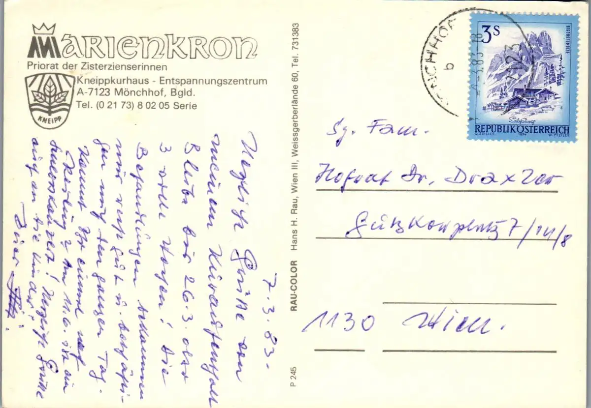 58708 - Burgenland - Mönchhof , Marienkron - gelaufen 1983