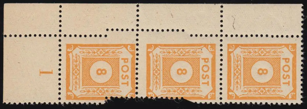 59 Ziffern 8 Pf. senkrechter Eck-Streifen mit versetztem Kammschlag, **