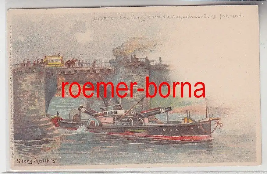 59199 Künstler Ak Dresden Schiffszug durch die Augustusbrücke fahrend um 1900