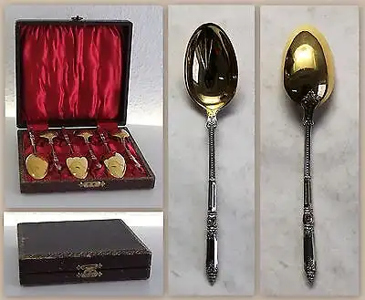 Historismus ungepunzt, vergoldet, Stiel Silber/versilbert mit Reliefdekor im original Kasten mit Metalschließe
