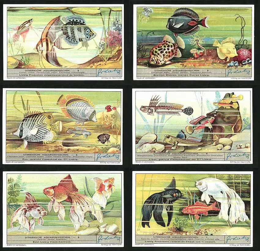 6 Sammelbilder Liebig, Serie Nr. 1339: Uitheemsche Aquariumvisschen, Goldfisch, Zierfische