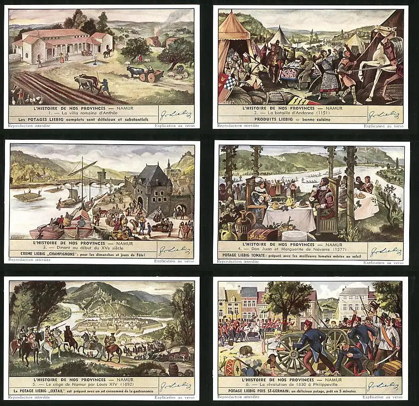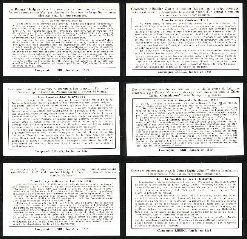 6 Sammelbilder Liebig, Serie Nr. 1550: L`Histoire de nos Provinces Namur, Philippeville, Revolution, Louis XIV, Hafen