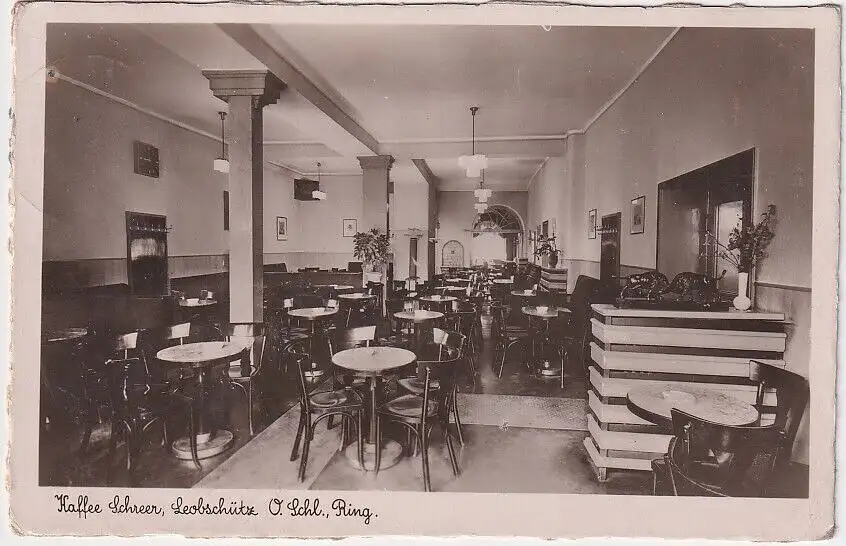 60502 Ak Leobschütz Oberschlesien Ring Kaffee Schreer 1941
