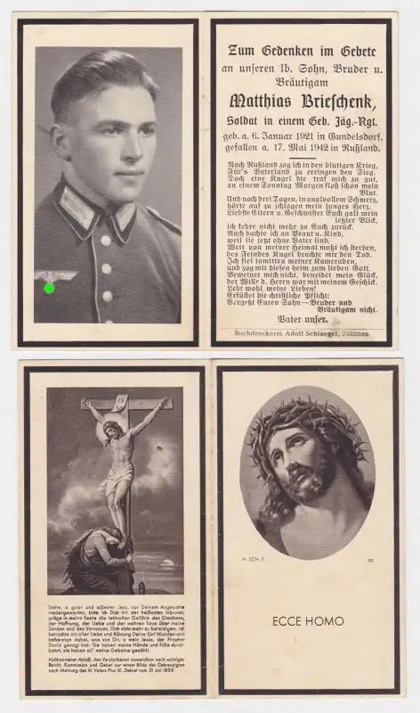 62003 Sterbebild WK2 Soldat Gebirgs-J?ger-Regiment gefallen 1942 in Russland