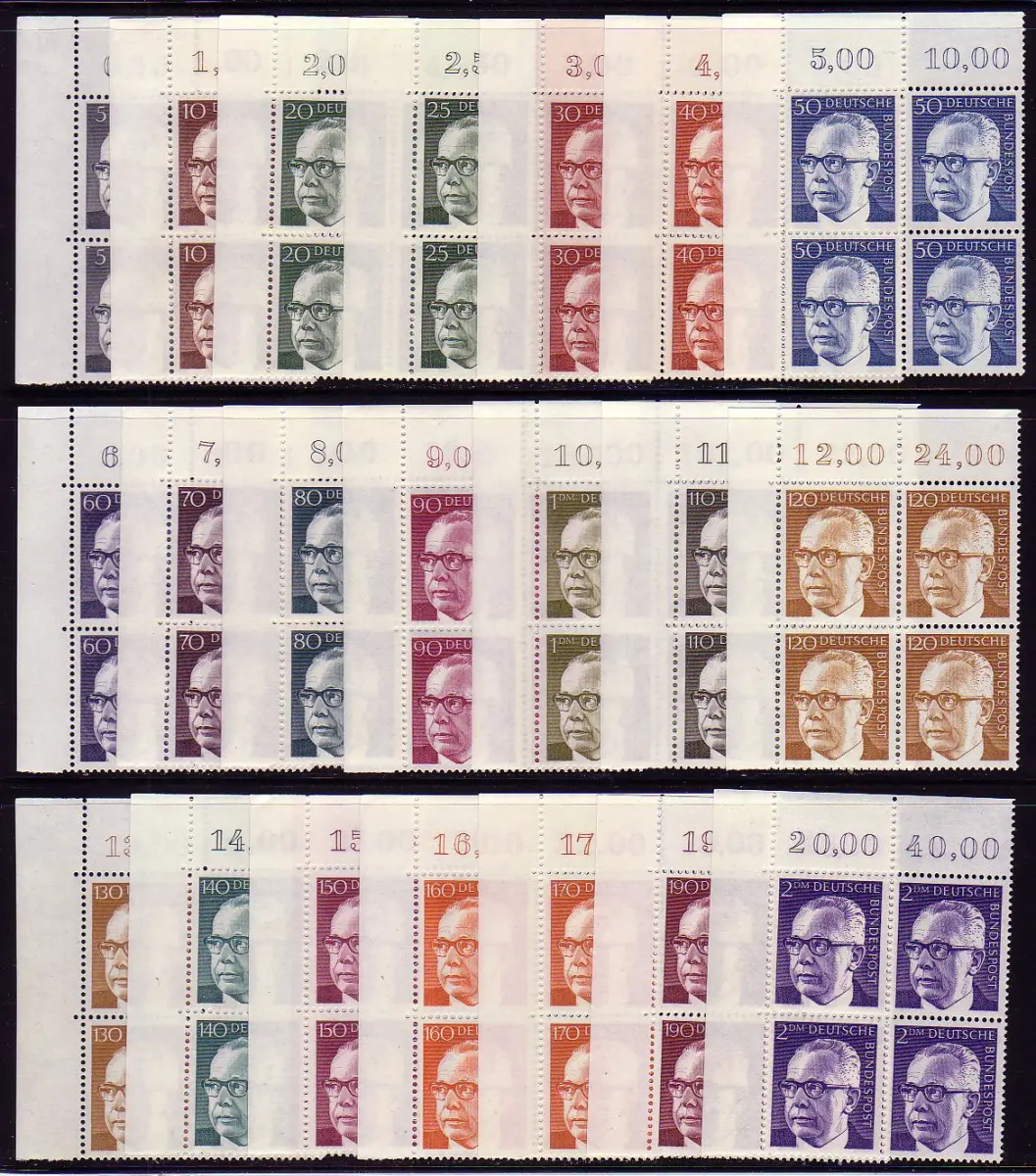 635 ff Heinemann 21 Werte, ER-Viererblock o.l., Satz postfrisch **