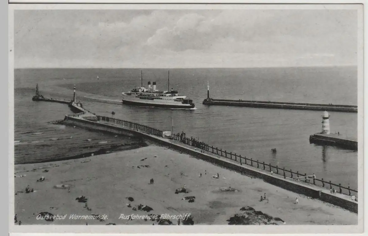 - (64726) Ansichtskarte, postcard, PPC - Ostseebad Warnemünde, einfahrendes Fährschiff, vor 1945