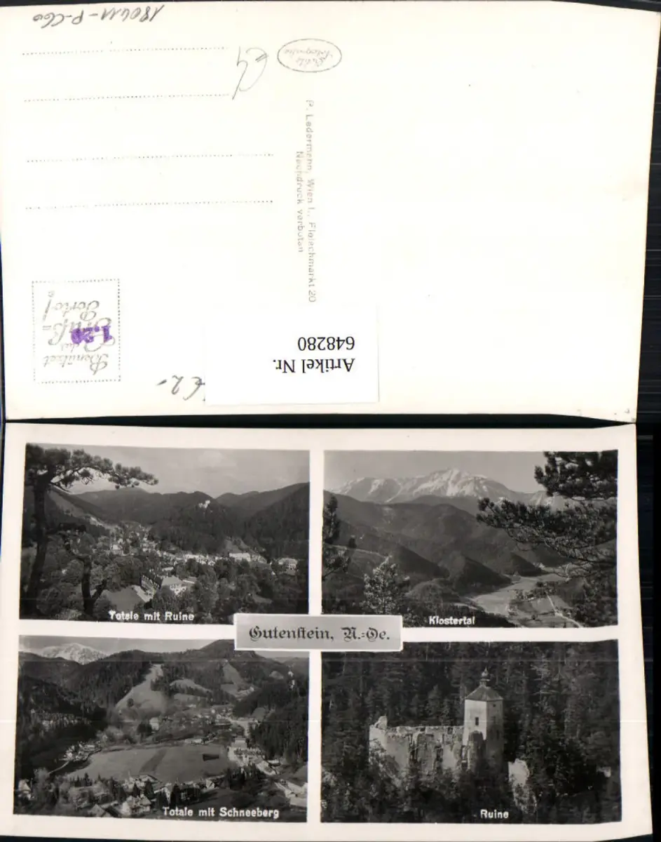648280,Mehrbild Ak Gutenstein Totale m. Ruine Klostertal Ruine