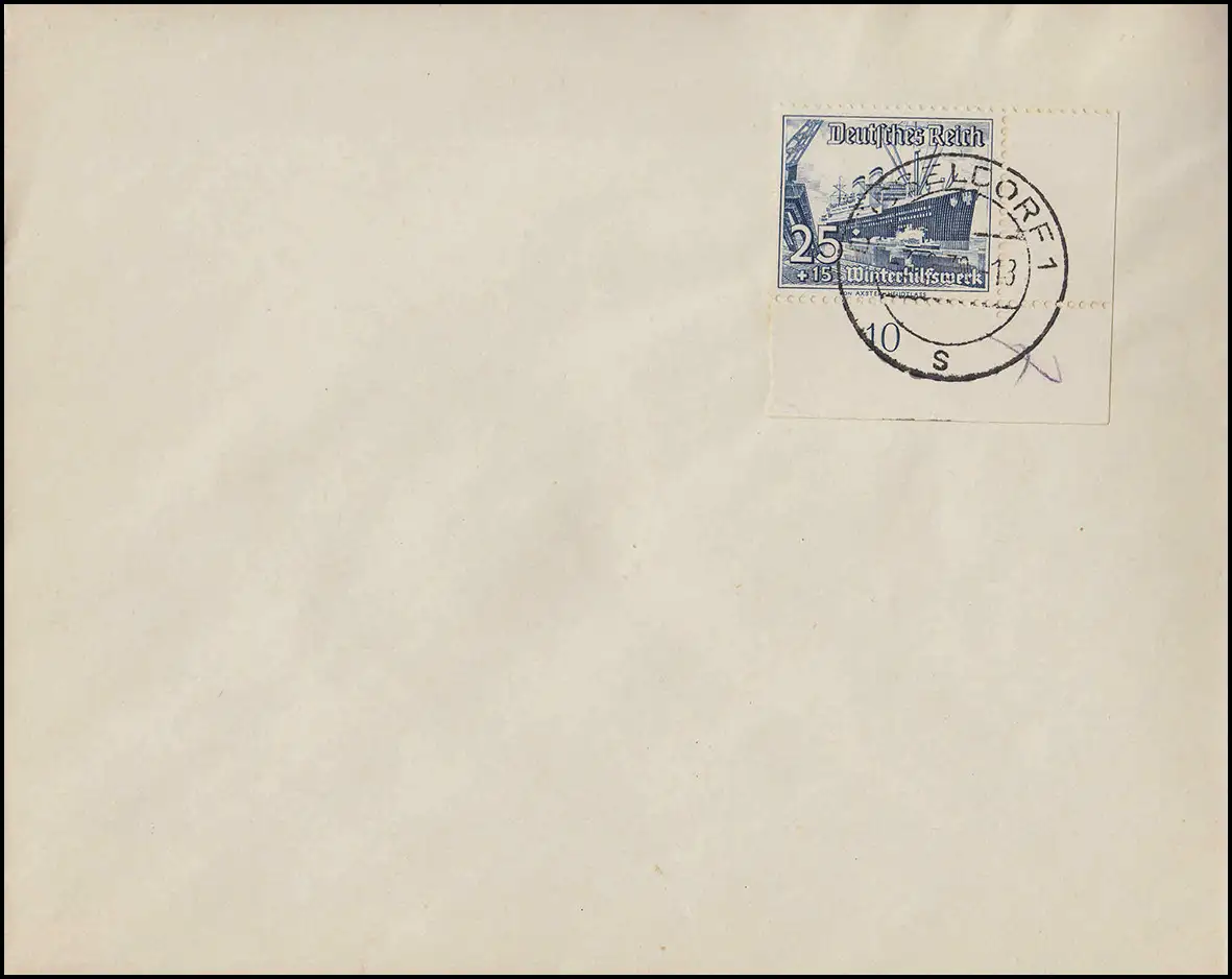 658 WHW 25 Pf. Dampfer als Ecke unten rechts auf Umschlag DÜSSELDORF 3.2.38