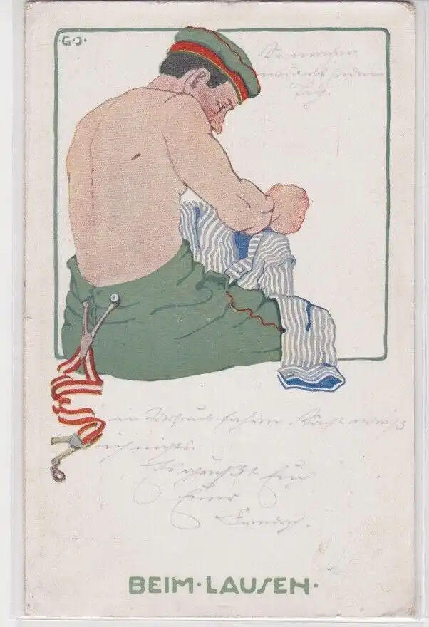 66125 Militär Künstler Ak Soldat beim Lausen 1918