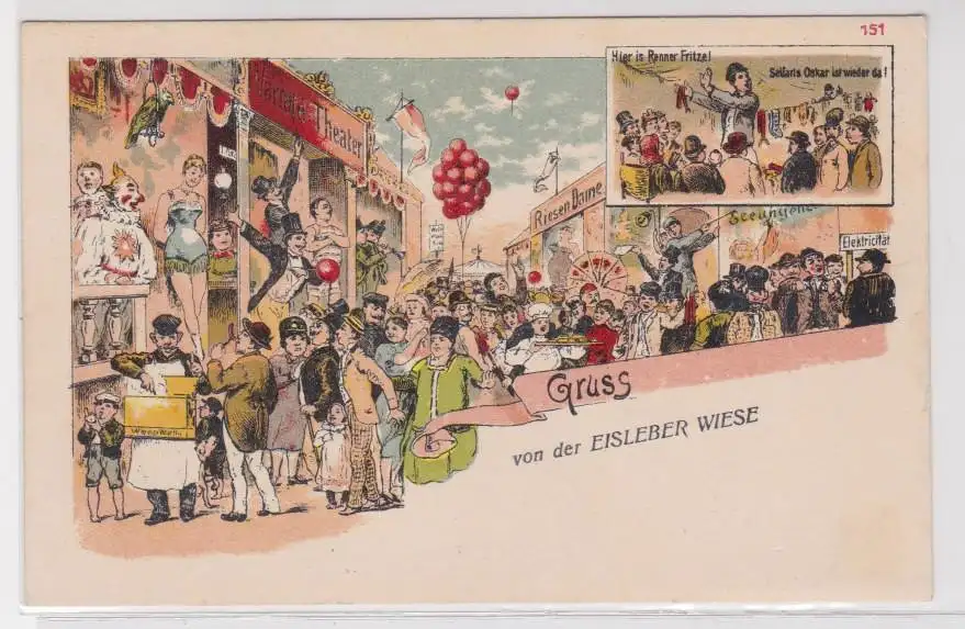 66399 Ak Lithographie Gruß von der Eisleber Wiese um 1910