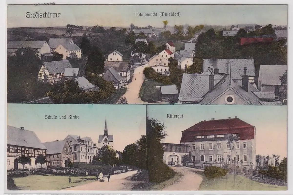 66783 Mehrbild Ak Großschirma Totalansicht, Schule, Kirche, Rittergut 1911