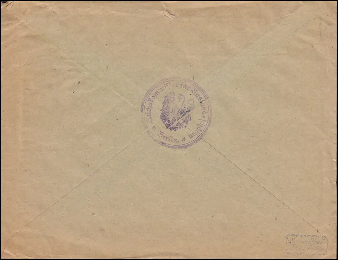 Portogerechte Einzelfrankatur auf Brief im Fernverkehr, Briefstempel Reichskommissar für Auslandsschäden Berlin / Reichsentschädigungskommission, an das Reichsmarineabwicklungsamt in Berlin W 10 - handschriftliche Korrektur. Bedarfserhaltung.