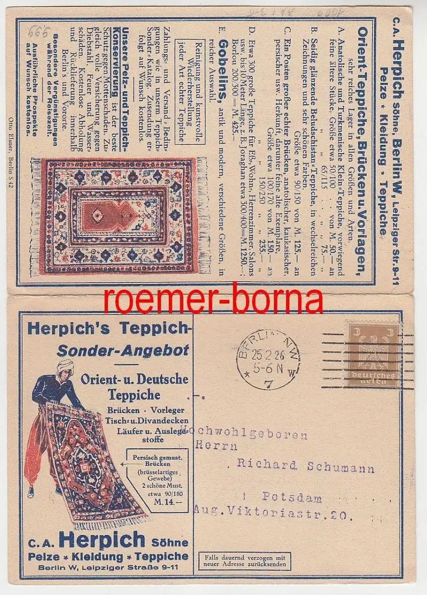 67313 Reklame Ak Herpichs Teppich Handlung 1926