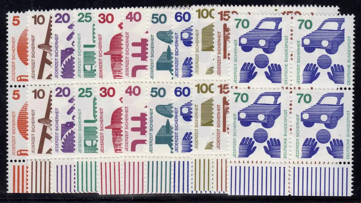 694 ff Unfall 11 Werte, Satz Unterrand-Viererblock, ** postfrisch