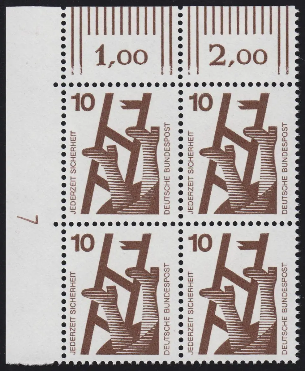 695 Unfallverhütung 10 Pf ** DZ 7, Feld 1, Eck-Vbl.