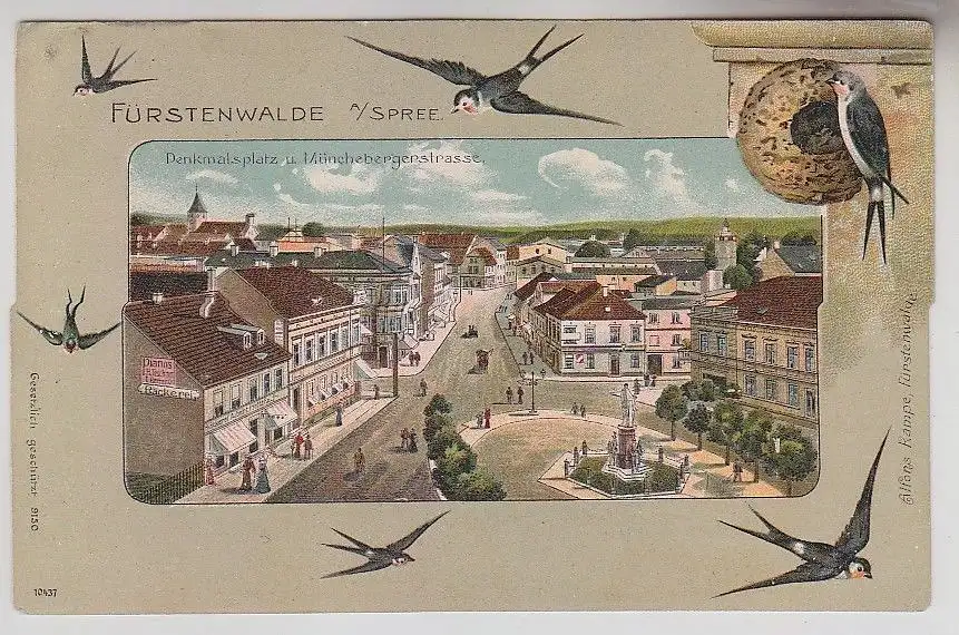 69816 Ak Fürstenwalde an der Spree Denkmalsplatz und Münchebergerstraße um 1910