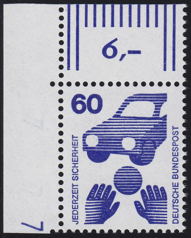 701 Unfallverhütung 60 Pf ** DZ 7 Feld 1 Ecke oben links