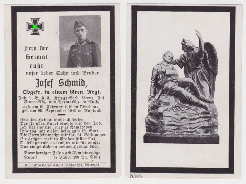70684 Sterbebild WK Grenadier Regiment Sturm-Abzeichen gefallen in Russland 1943