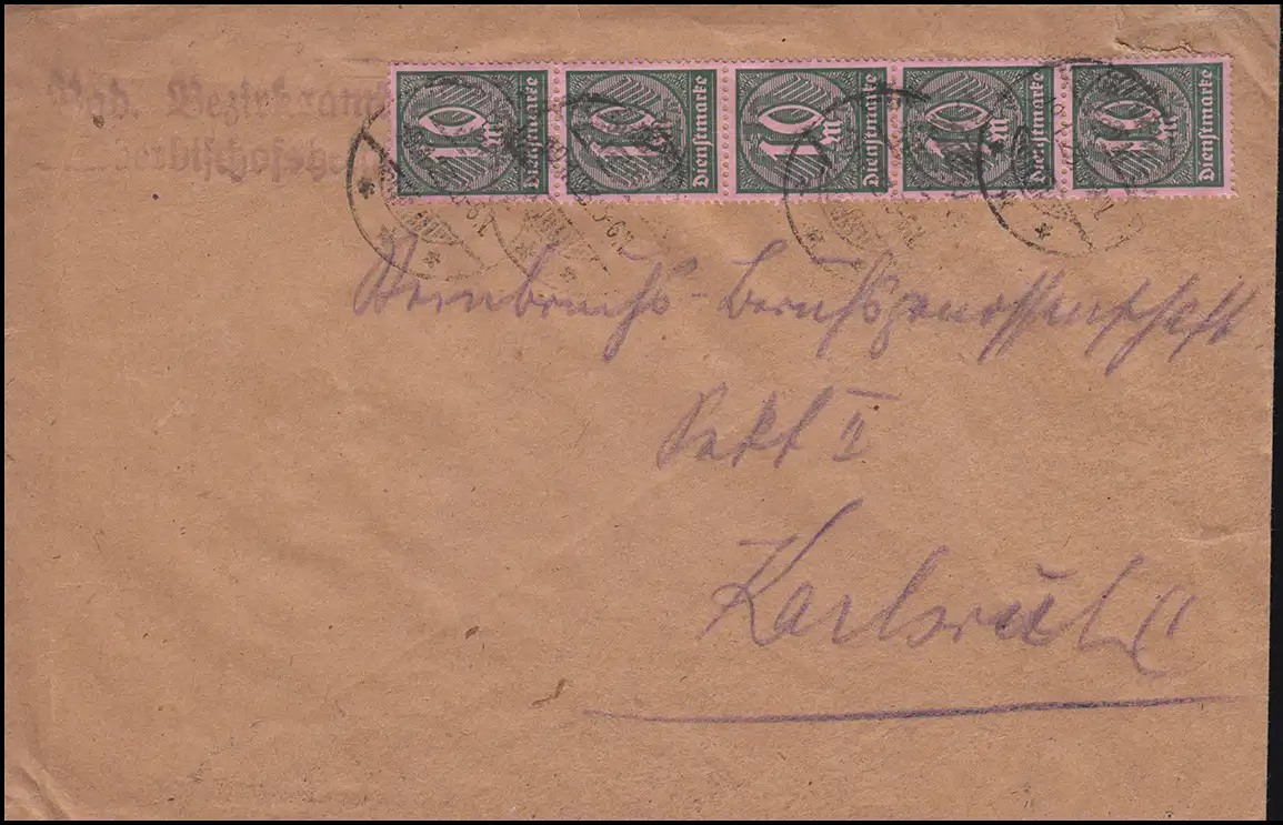 71 Dienstmarke als 5er-Streifen MeF auf Infla-Brief TAUBERBISCHOFSHEIM 19.1.23
