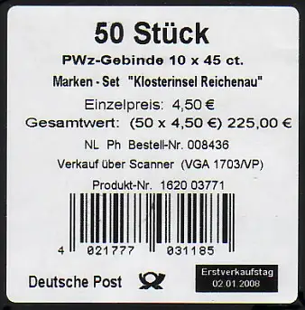 71 MH Reichenau, Banderole für 50 MH, Type I (ohne DHL-Code)