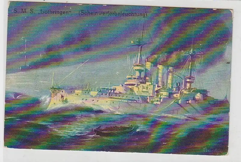 71114 Ak Kriegsschiff S.M.S. 'Lothringen' in Scheinwerferbeleuchtung um 1915