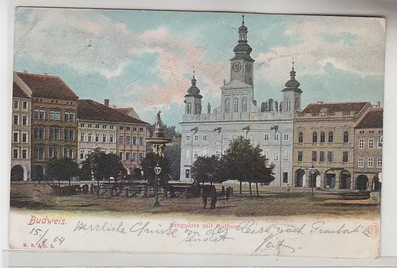 71118 Ak Budweis Ringplatz mit Rathaus 1904