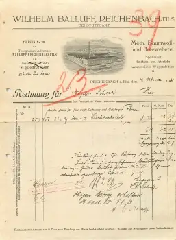 73262 Reichenbach Fils Weberei Wilhelm Balluff Briefkopf mit Fabrikansicht 1931