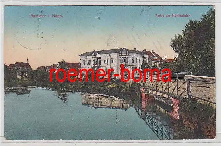 73596 Ak Munster in Hannover Partie am Mühlenteich 1913