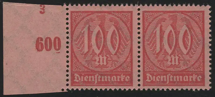 74 Dienstmarke 100 M. Randpaar mit Formnummer 3, **