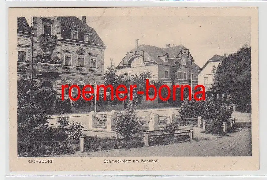74579 Feldpost Ak Borsdorf Schmuckplatz am Bahnhof 1918