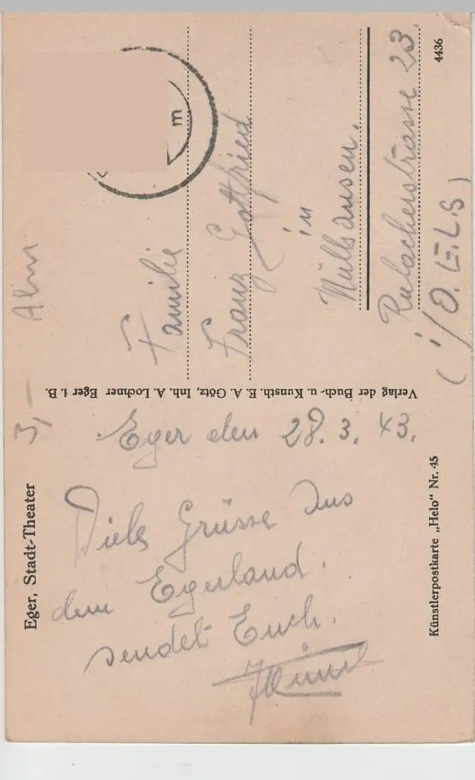 - (75496-) Ansichtskarte, postcard, PPC - Eger, Cheb, Stadttheater 1943