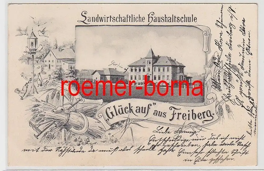 75802 Ak "Glück auf" aus Freiberg Landwirtschaftliche Haushaltschule 1903