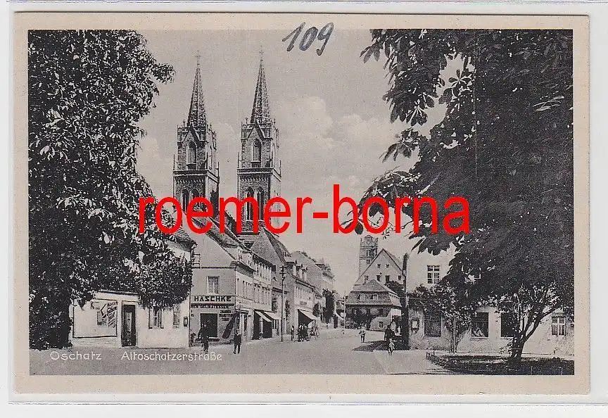 76713 Ak Oschatz Altoschatzerstraße mit Geschäft Haschke um 1940