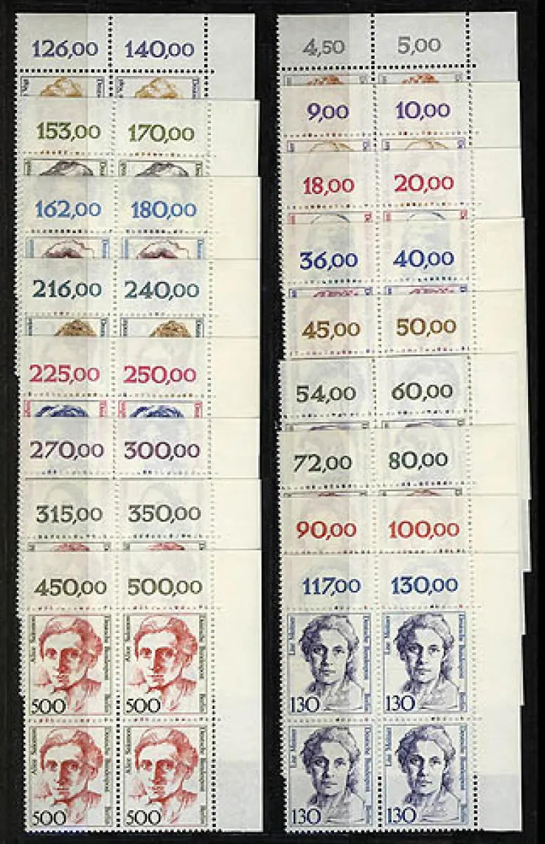 770ff Frauen 17 Werte, Eckrand-Viererblock oben rechts, Satz **