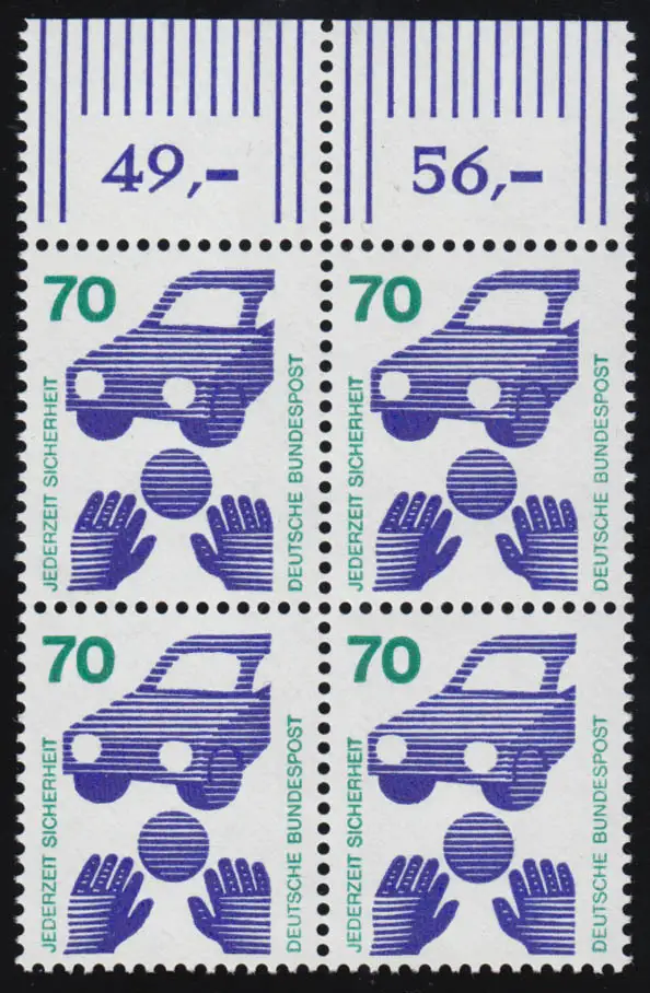 773 Unfallverhütung 70 Pf OR-Viererbl. ** postfrisch