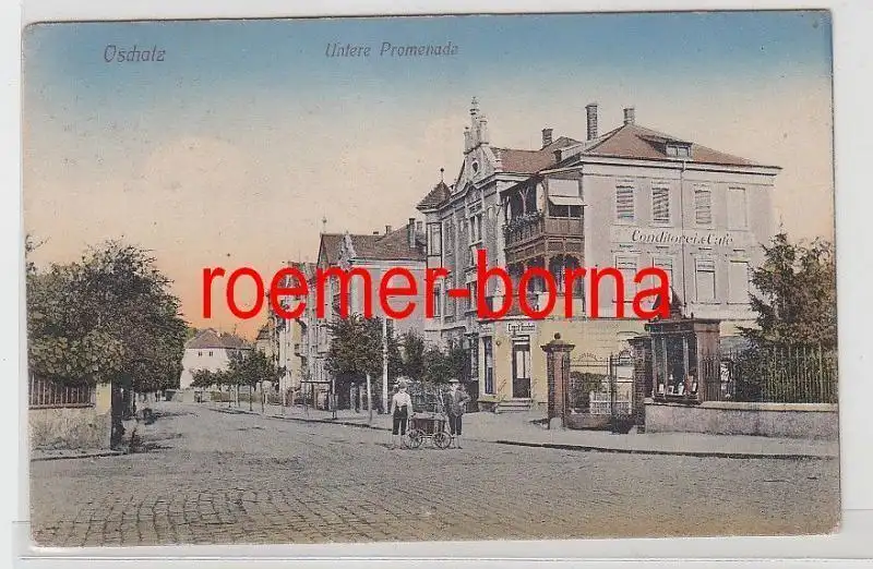 79549 Ak Oschatz untere Promenade mit Conditorei und Café 1916